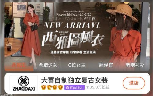 如近几年国货崛起,不少淘系女装品牌能敏感于热度机遇,推出国风产品。借前段时间热播剧《司藤》再次掀起的“国风”热,大喜自制就上新了多款国风旗袍类服装。赵岩透露,得益于网络数据与舆情的结合,从设计打板生产,整个过程只用了两天时间。在赵岩看来,到现在,淘系女装仍然有改变中国女孩审美的实力,并正借改变输出着“适合国人且有文化底蕴的东西”、传达着拥有民族自信的价值审美。