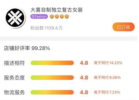在童话爱情包裹下,艺术、设计专业毕业的两人开启了女装淘宝店创业之路,并将红人IP注入了店铺品牌“大喜自制”之中。这样个人IP与店铺品牌紧密绑定的网红店,被认为是淘宝生态孕育出来的独特业态,常被放在一起比较的还有张大奕与她的“吾欢喜的衣橱”、雪梨与她的“钱夫人家”。