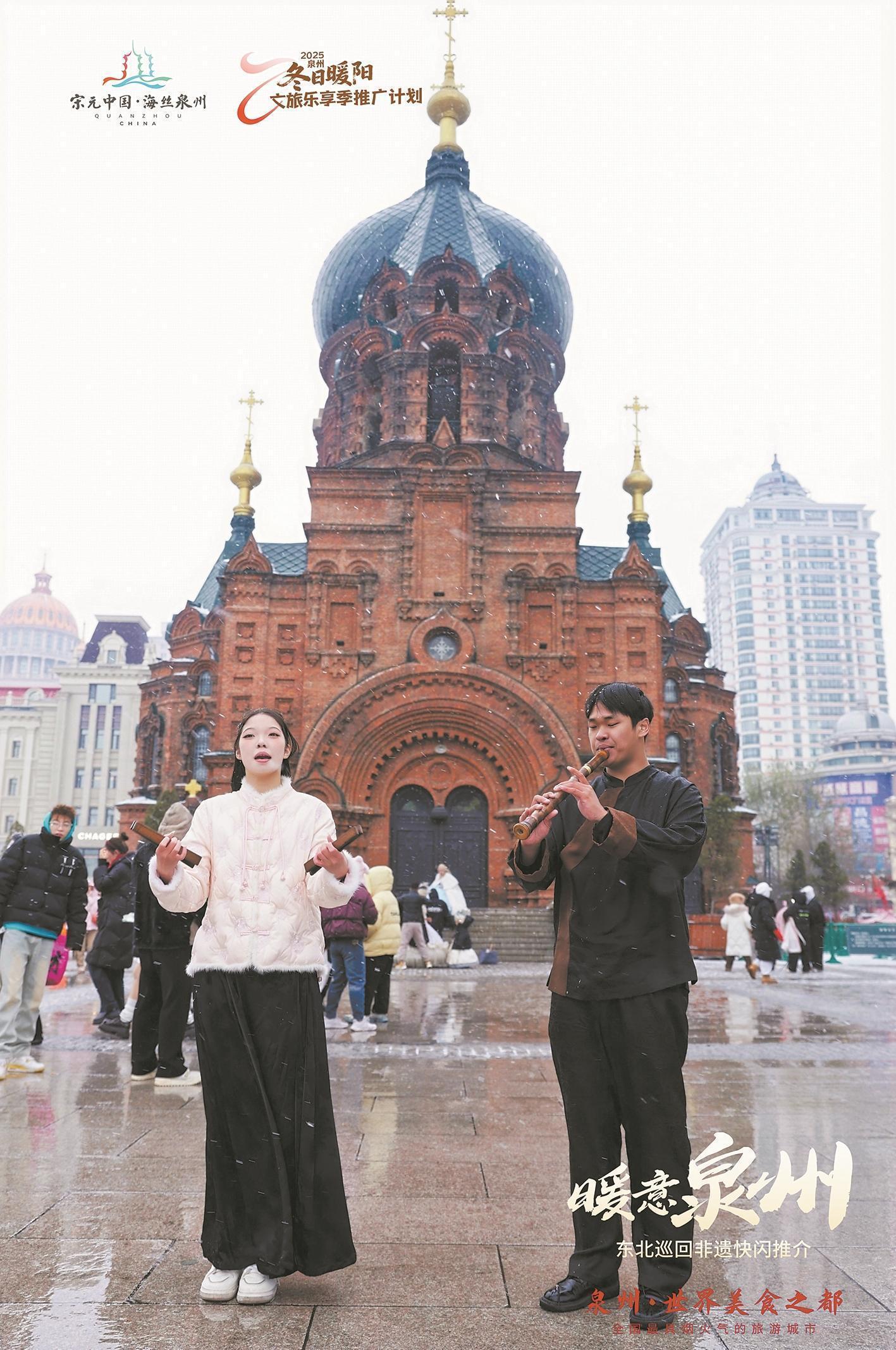 现场节目互动 活动引流 三城话题霸榜 传播量超1550万次 “零下二十几摄氏度的街头,突然响起南音琵琶与洞箫悠扬的旋律,仿佛把闽南的海风带到了东北的雪地里。那一刻,我站在人群里,眼眶有点发热。”哈尔滨文旅博主大东的感慨,通过社交平台传递给广大粉丝,成为活动传播的生动注脚。 本次活动创新采用“8位知名博主+官方账号”的宣传模式,形成传播合力。据泉州市文旅局数据,短短6天,活动核心话题表现亮眼:“泉州非遗快闪空降东北”“泉州把烟火气空运到沈阳了”双话题登上沈阳同城榜TOP1、TOP2,在榜时长超48小时,热度峰值达531万,同时带动话题登顶泉州同城榜TOP1。哈尔滨站话题“泉州非遗与哈尔滨冬雪的双向奔赴”登上同城榜,收获309.7万热度值。“泉州非遗快闪空降东北”“泉州冬日暖阳文旅乐享季”“世界美食之都泉州非遗快闪东北行”等系列话题传播量超146万次,助力本次活动话题总传播量超1550万次,让泉州文旅热度持续攀升。 流量背后是精准的受众触达。博主大东的粉丝以30至60岁中青年及“银发”群体为主,他在粉丝群的调研显示,超七成50岁以上用户认可泉州“文化活动多、气候舒适、价格合理”的文旅优势,将泉州列为冬季旅居新选。“过去长辈暖冬常常想去三亚、西双版纳,泉州通过非遗快闪成功‘种草’,让更多人知晓这座暖冬古城。”大东说。